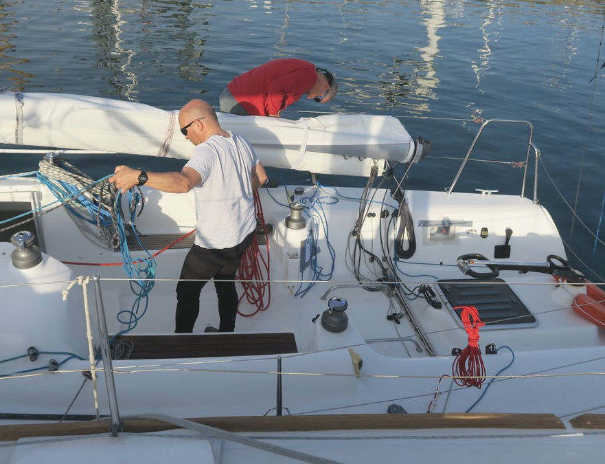 Sylvaine: réglages piano, Christian : réglage grand-voile,